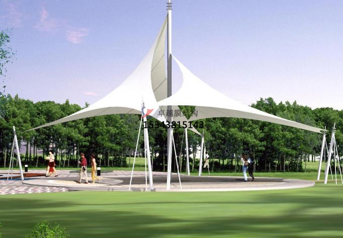 張拉膜景觀在焊接時(shí),有必要在兩片膜間加一層PFA或FEP作為助焊劑。