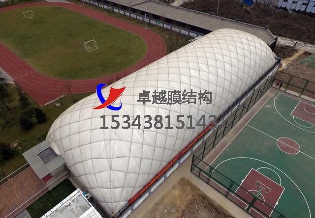 充氣結構主要有氣承式和氣囊式兩種結構形式。①氣承式結構是直接用單層薄膜作為屋面和外墻,將 充氣結構周邊錨固在圈梁或地梁上,充氣后形成圓筒狀、球狀或其他形狀的建筑物(圖。室內(nèi)氣壓為室外氣壓的1.001~1.003倍。人和物通過氣鎖出入口進出。為減小薄膜拉力、增大結構跨度氣承式結構薄膜上面可設置鋼索網(wǎng)。氣囊式結構是將空氣充入由薄膜制成的氣囊,形成柱、梁、拱、板、殼等基本構件,再將這些構件連接組合而成的建筑物。氣囊中的氣壓為室外氣壓的2~7倍,故是一種高壓體系。