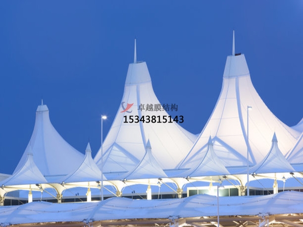 2、 透光性:透光性是現(xiàn)代膜結(jié)構(gòu)被廣泛認(rèn)可的特性之一。膜材的透光性可以為建筑提供所需的照度,這對(duì)于建筑節(jié)能十分重要。對(duì)于一些要求光照多且亮度高的商業(yè)建筑等尤為重要。通過自然采光與人工采光的綜合利用,膜材透光性可為建筑設(shè)計(jì)提供更大的美學(xué)創(chuàng)作空間。夜晚,透光性將膜結(jié)構(gòu)變成了光的雕塑。