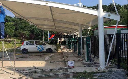 膜結(jié)構(gòu)充電站樁車棚設(shè)計(jì)、施工項(xiàng)目,效果及簡(jiǎn)介如下: