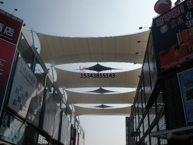 2.經(jīng)濟(jì)性:由于膜材具有一定的透光率,白天可減少照明強(qiáng)度和時間,能很好地節(jié)約能源。同時夜間彩燈透射形成的絢爛景觀也能達(dá)到很好的廣告宣傳效益