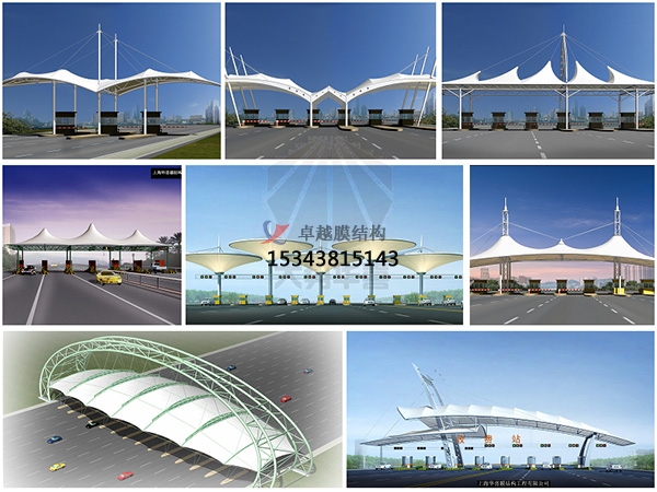 基本概念:城市的交通樞紐是城市命脈的關(guān)鍵性建筑,使用功能要求建筑物各組成單元的標志明確。因而近來年,越來越多收費站采用膜結(jié)構(gòu)。建筑膜材料的使用壽命為25年以上。在使用期間,在雪或風(fēng)荷載作用下均能保持材料的力學(xué)形態(tài)穩(wěn)定不變。建成於1973年的美國加州La Verne大學(xué)的學(xué)生活動中心是已有23年歷史的張拉膜結(jié)構(gòu)建筑.跟蹤測試與材料的加載與加速氣候變化的試驗,證明它的膜材料的力學(xué)性能與化學(xué)穩(wěn)定性指標下降了20%至30%,但仍可正常使用。膜的表層光滑,具有彈性,大氣中的灰塵、化學(xué)物質(zhì)的微粒極難附著與滲透,經(jīng)雨水的沖刷建筑膜可恢復(fù)其原有的清潔面層與透光性。
