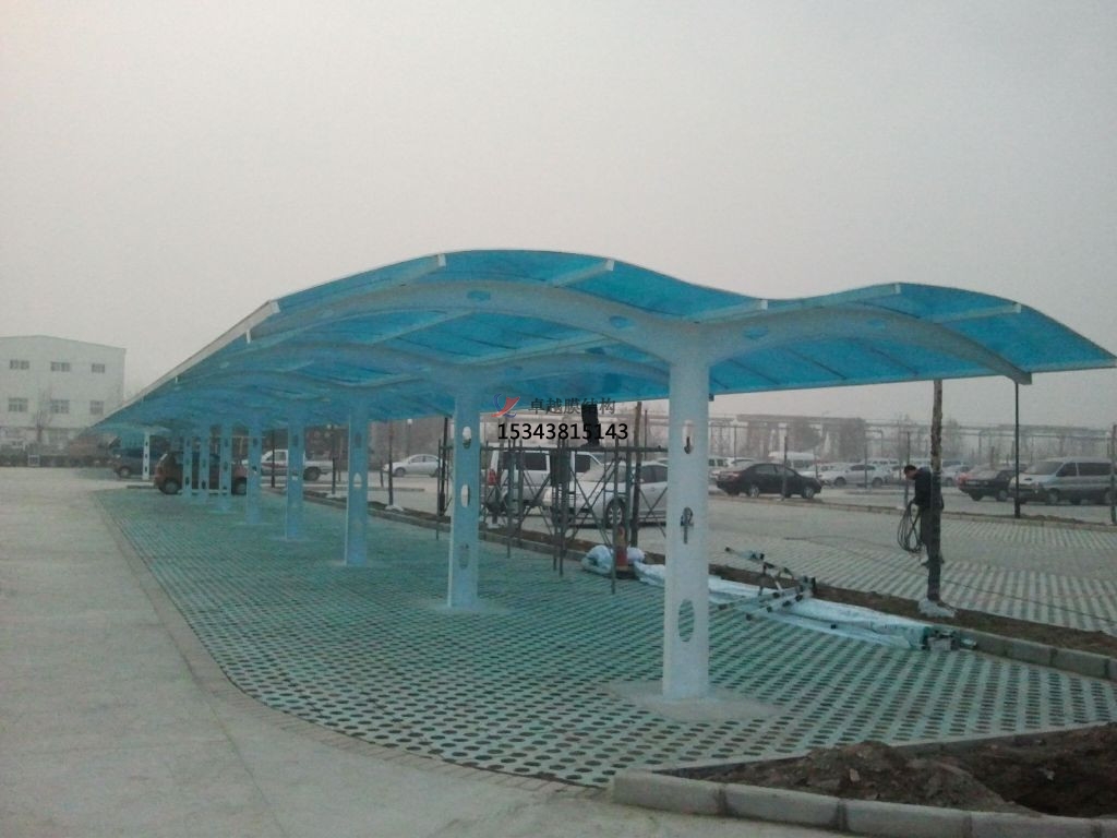 商業(yè)廣場(chǎng)雨棚搭建設(shè)計(jì)特別適合用來建造城市標(biāo)志性建筑的屋頂,如體育與娛樂性場(chǎng)館,需有廣告效應(yīng)的商場(chǎng)、餐廳等。城市的交通樞紐是城市命脈的關(guān)鍵性建筑,使用功能要求建筑物各組成單元的標(biāo)志明確。因而近來年,這類建筑越來越多采用膜結(jié)構(gòu)。建筑膜材料的使用壽命為 25 年以上。在使用期間,在雪或風(fēng)荷載作用下均能保持材料的力學(xué)形態(tài)穩(wěn)定不變。建成于 1973 年的美國加州 La Verne 大學(xué)的學(xué)生活動(dòng)中心是已有 23 年歷史的商業(yè)廣場(chǎng)雨棚搭建建筑.跟蹤測(cè)試與材料的加載與加速氣候變化的試驗(yàn),證明它的膜材料的力學(xué)性能與化學(xué)穩(wěn)定性指標(biāo)下降了 20 %至 30 %,但仍可正常使用。膜的表層光滑,具有彈性,大氣中的灰塵、化學(xué)物質(zhì)的微粒極難附著與滲透,經(jīng)雨水的沖刷建筑膜可恢復(fù)其原有的清潔面層與透光性。