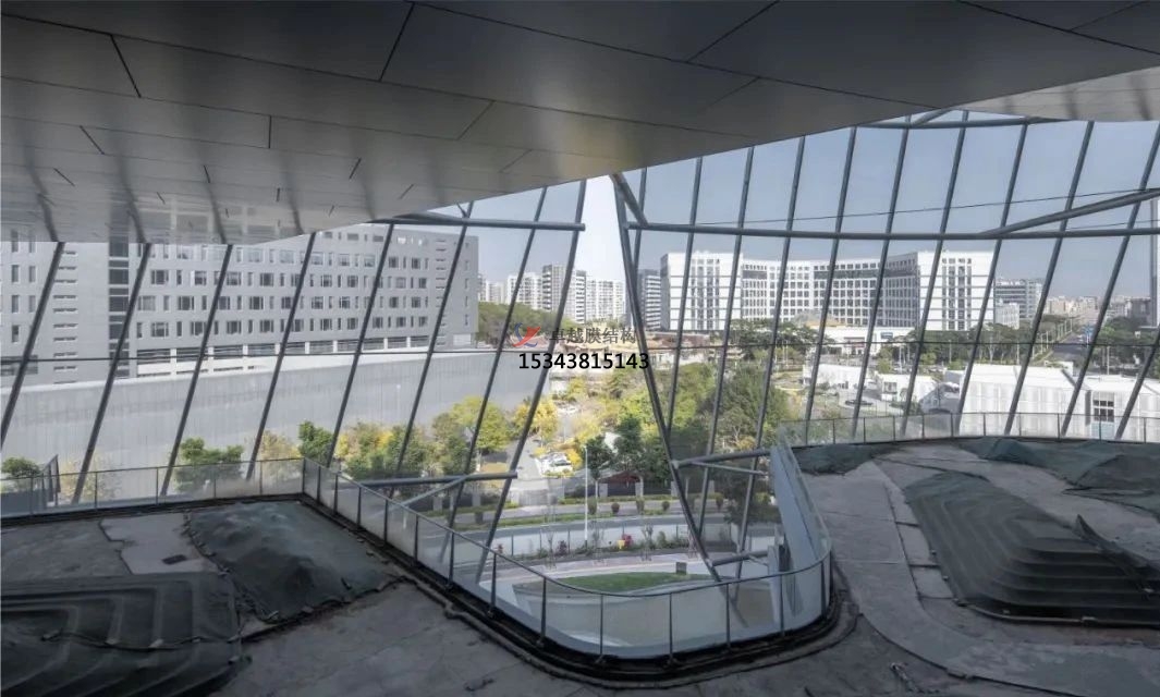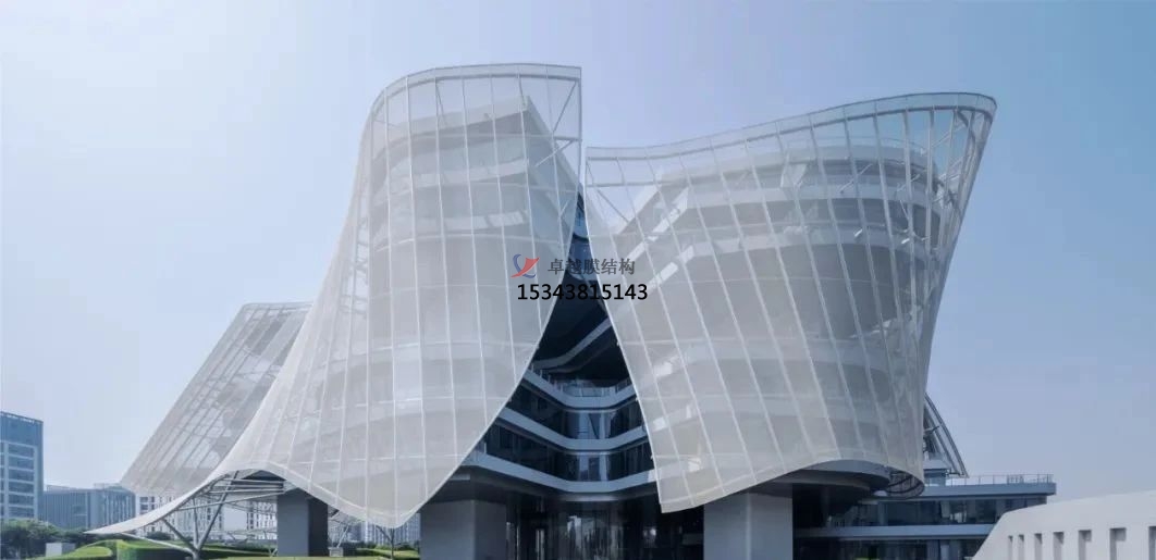 該項(xiàng)目占地面積1.5萬(wàn)平方米(約16.15萬(wàn)平方英尺),總建筑面積為6.1萬(wàn)平方米(約65.66萬(wàn)平方英尺)。它采用星形布局,從中央中庭向六個(gè)有機(jī)分支伸出六條支臂。半透明的PTFE材質(zhì)薄膜覆蓋在外部,與建筑物保持一定的距離,不僅能夠減輕日照強(qiáng)度,還可以在炎熱的季節(jié)為建筑物提供通風(fēng)。