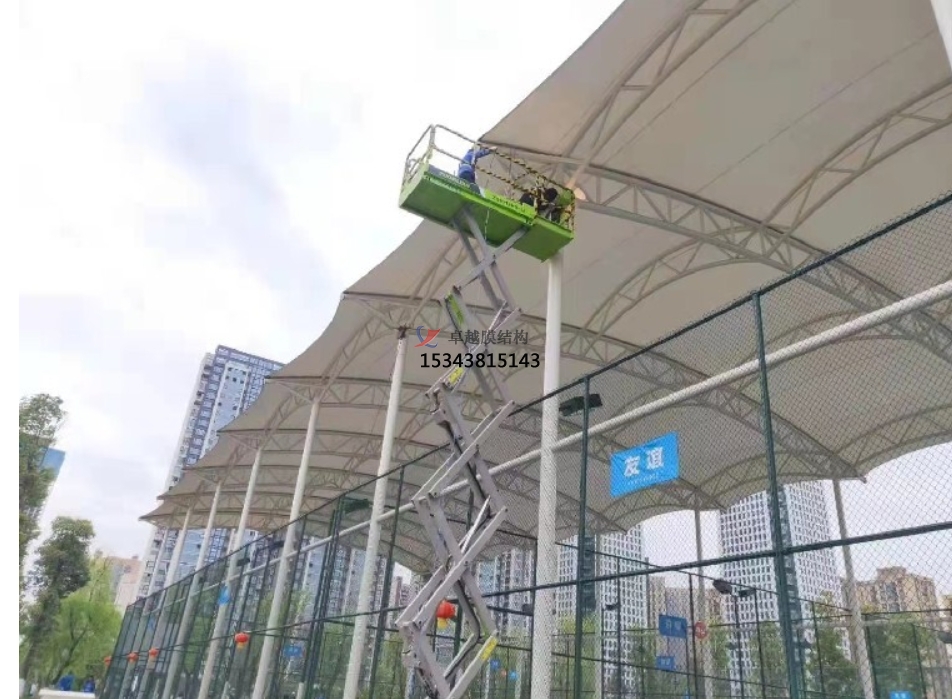 膜結構材料具有較好的耐久性和自潔性。一般情況下,只需要定期進行簡單的清潔和檢查,不需要像傳統(tǒng)建筑結構那樣頻繁地進行大規(guī)模的維修和保養(yǎng)。選擇具有自潔性的膜材,表面的自潔涂層可以在雨水的沖刷下自動清潔灰塵和污漬,大大降低了維護成本。