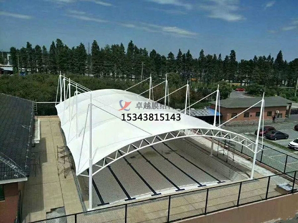 3、造型多變化:國(guó)產(chǎn)PVDF膜布材料工藝性好,是具有超強(qiáng)拉伸力的柔性面料,克服一些剛性材料難以制造的復(fù)雜空間和曲面變化方案。張拉強(qiáng)度4200N每平方米,可以依靠骨架支撐,也可以依靠膜結(jié)構(gòu)索具制作各異的空間曲面。曲面光潔柔和,鋼柔結(jié)合的造型、清晰突出表現(xiàn)主休。
