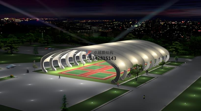 球場膜結(jié)構(gòu)是一種以膜材料為主要覆蓋物,采用高強度柔性薄膜材料,結(jié)合鋼結(jié)構(gòu)或索網(wǎng)結(jié)構(gòu),通過施加預應力形成具有一定剛度和承載能力的建筑結(jié)構(gòu)。廣泛應用于足球場、網(wǎng)球場、籃球場等體育場館。