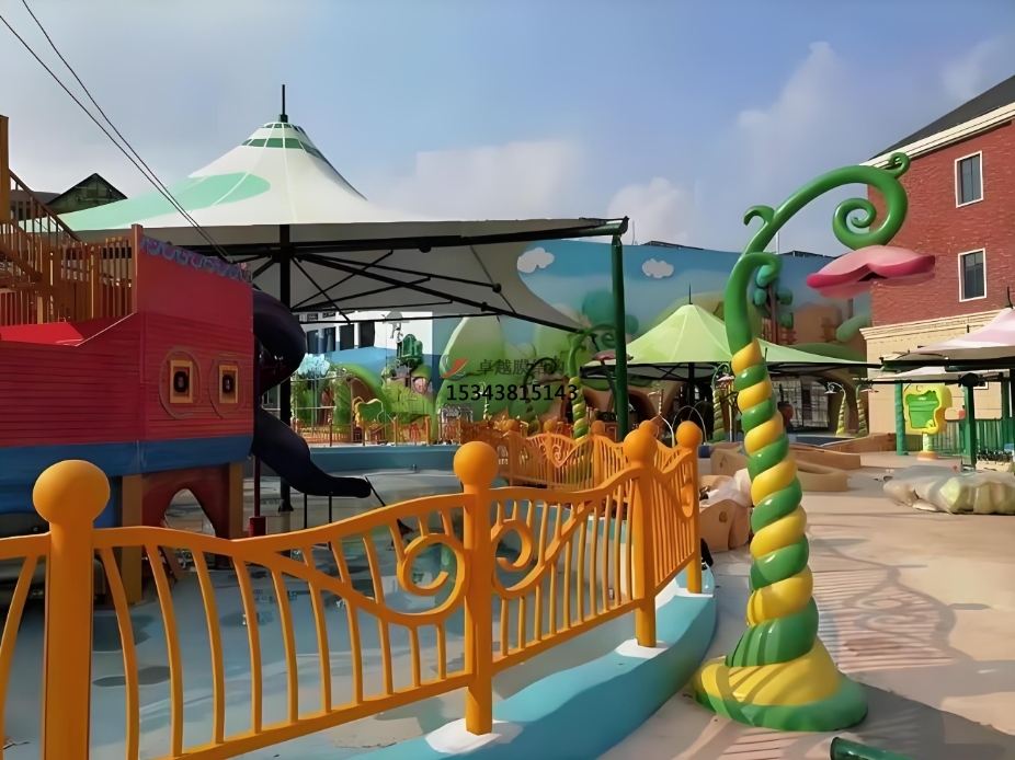 膜結(jié)構(gòu)設(shè)計(jì)理念融入兒童游樂場(chǎng)建設(shè)中是一個(gè)很棒的想法,而且工程案例也越來越多。膜結(jié)構(gòu)造型豐富優(yōu)美,輕巧靈動(dòng),不論是小體量的遮陽(yáng)傘,還是大跨度的穹頂,都能根據(jù)環(huán)境設(shè)計(jì)出與之相稱的造型。甚至包括一些童趣造型,比如動(dòng)物、花朵、飛鳥、花傘等等......