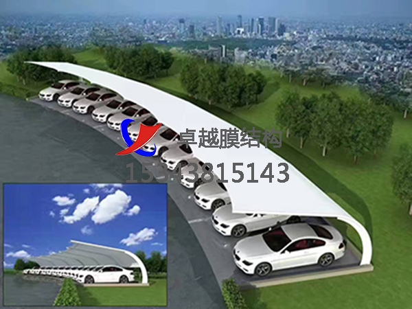 車棚一般采用的膜材使用壽命可以達到15-30年,而且具有強度高、阻燃性好、抗紫外線、自潔性好的特點,具有很好的透光性(透光率13%-15%,熱反射率70%-75%),整體觀感頗佳,膜結構車棚可以作為永久性建筑使用。