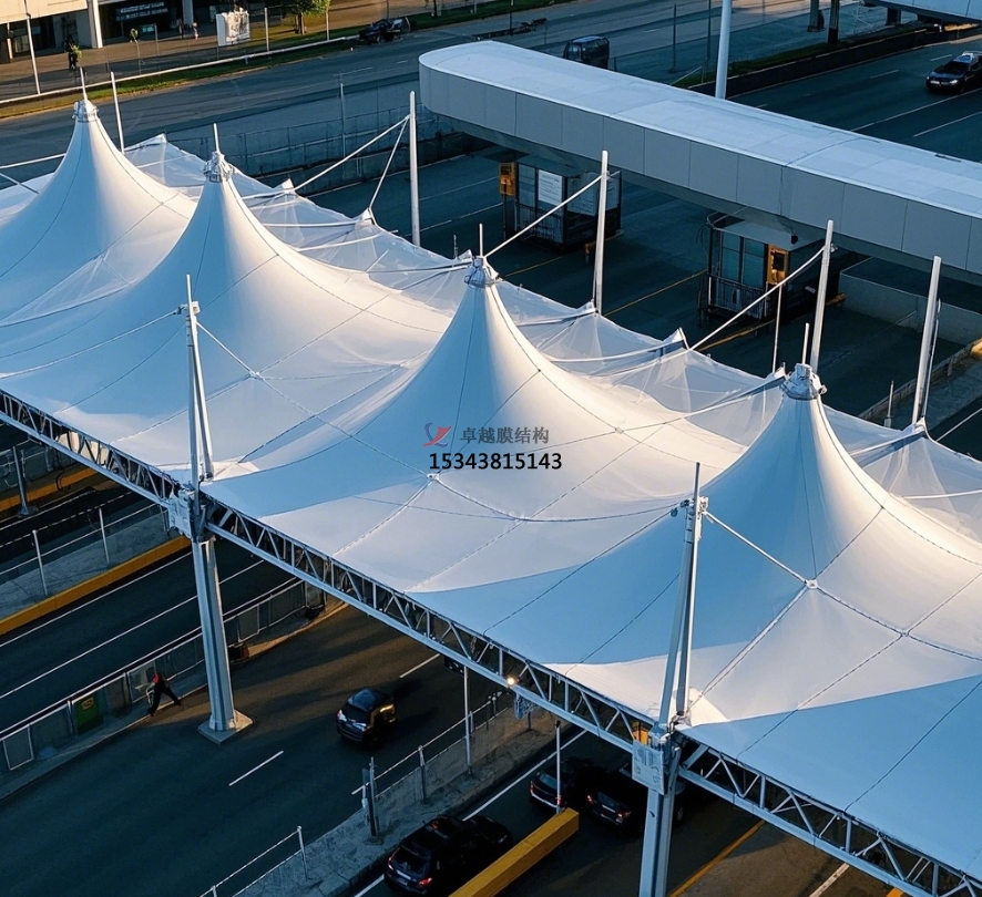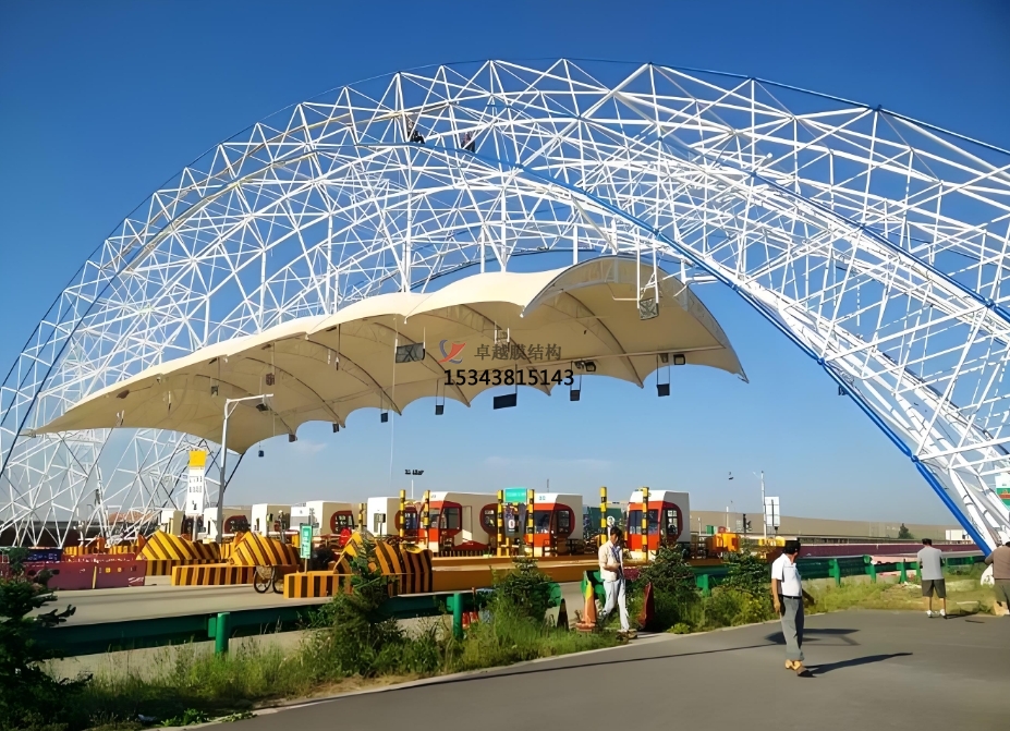 在交通根底設(shè)施領(lǐng)域,收費(fèi)站作為關(guān)鍵節(jié)點(diǎn),其修建結(jié)構(gòu)方式正不斷演化與立異。膜結(jié)構(gòu)以共同魅力脫穎而出,被廣泛使用于高速公路、城市快速路等各類(lèi)收費(fèi)站,為過(guò)往車(chē)輛與收費(fèi)人員打造出兼具有用與漂亮的空間。
