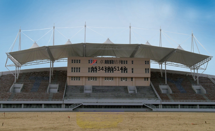 訂制體育場膜結(jié)構(gòu)看臺具有環(huán)保與安全性能。其可持續(xù)性設(shè)計(jì),通過透光膜材減少照明能耗,自潔涂層可降低維護(hù)成本。材料可回收,施工過程減少廢棄物排放。需通過結(jié)構(gòu)強(qiáng)度、抗老化、耐風(fēng)壓等多輪測試,確保50年以上使用壽命。在訂制體育場膜結(jié)構(gòu)看臺時(shí),要選擇有經(jīng)驗(yàn)、信譽(yù)好的設(shè)計(jì)和施工團(tuán)隊(duì),嚴(yán)格按照相關(guān)規(guī)范和標(biāo)準(zhǔn)進(jìn)行操作,以確??磁_的質(zhì)量和安全性。