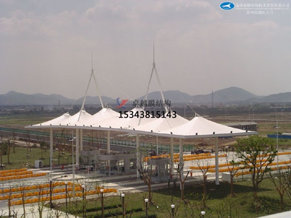 牡丹江卓越膜結構工程公司是專業(yè)從事收費站雨棚,高速高速公路膜結構、高速服務區(qū)充電站配套雨棚,高速公路服務區(qū)景觀遮陽棚,高速公路加油站罩棚的專業(yè)廠家,擁有一批國內更早從事膜結構行業(yè)的工程技術人才,并與牡丹江地區(qū)各著名設計院、大學都有緊密合作,使用國際更先進的膜結構建筑設計軟件、荷載分析軟件、找型裁剪軟件、結構計算軟件,充分保證了牡丹江卓越公司在中國膜結構領域技術領先性。下面給各位介紹一下我公司在牡丹江及周邊縣市完工的一批高速公路收費站膜結構工程案例。