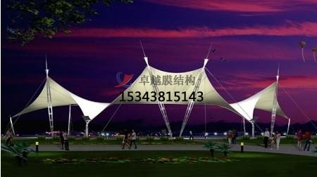 作為膜結(jié)構(gòu)景觀的主要材料,目前市場上主要是以是PVC膜、PVF膜、PVDF、PTFE乃至更新的ETFE 膜材為主。