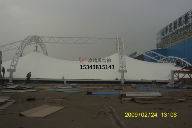 更后:商業(yè)街膜結構穹頂的主要構成有膜布,鋼結構(Q235、無縫焊管、高頻焊管、H型鋼等),更主要的特性重量輕、強度高、防火難燃、自潔性好,不受紫外線影響、抗疲勞、耐扭曲、耐老化、使用壽命長。具有高透光率,熱吸收量很少。正是因為這種跨時代的膜材料的發(fā)明,使膜結構建筑成為現代化的永久性建筑。