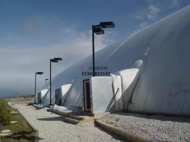 氣膜封閉建筑在我國(guó)是一種新興的建筑方式,所謂氣膜全封閉煤場(chǎng)就是用特殊的建筑膜材做外殼,配備一套智能化的機(jī)電設(shè)備在氣膜建筑內(nèi)部提供空氣的正壓,把建筑主體支撐起來(lái)的一種建筑結(jié)構(gòu)系統(tǒng)。