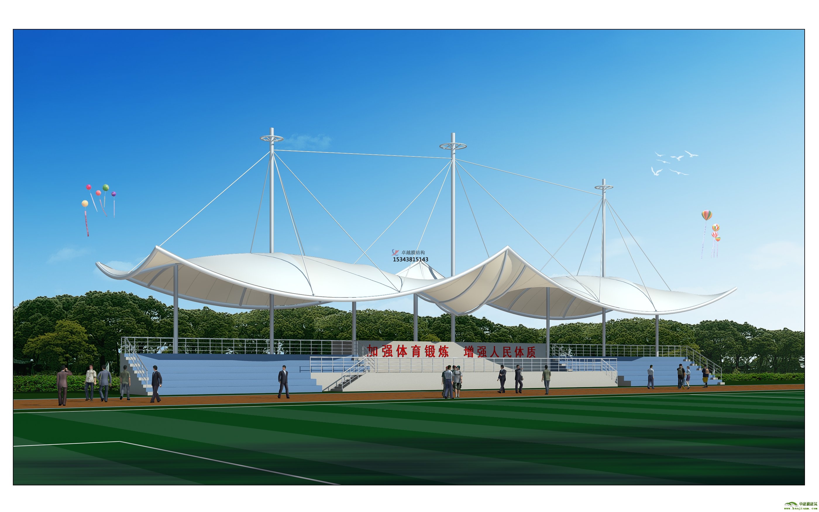 體育場看臺頂棚都是設(shè)計(jì)之后,在工廠加工然后現(xiàn)場組裝,可以迅速搭建,在臨時景觀搭建的時候具有無與倫比的優(yōu)勢,而且體育場看臺頂棚可以快速拆卸,移動重復(fù)使用。