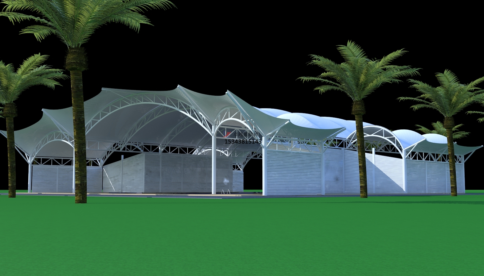 7、我司根據(jù)環(huán)境及應(yīng)用場(chǎng)合的不同,把選好的“面料”(膜材)按尺寸裁剪,設(shè)計(jì)出各種獨(dú)特的建筑款式,再與“輔料”(加強(qiáng)構(gòu)件,如鋼架、鋼柱或鋼索)結(jié)合通過(guò)一定方式使其內(nèi)部產(chǎn)生一定的預(yù)張應(yīng)力以形成某種空間。