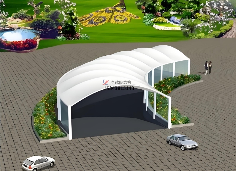 隨著科技的不斷進(jìn)步,膜結(jié)構(gòu)頂棚在車庫出入口的應(yīng)用也將不斷創(chuàng)新和發(fā)展。未來,膜結(jié)構(gòu)頂棚可能會(huì)更加智能化,例如通過傳感器自動(dòng)調(diào)節(jié)膜材的透光率和遮陽效果,以適應(yīng)不同的天氣和環(huán)境條件。同時(shí),膜結(jié)構(gòu)頂棚的材料也將更加環(huán)保和高性能,例如采用納米材料等新型材料,提高膜材的性能和使用壽命。