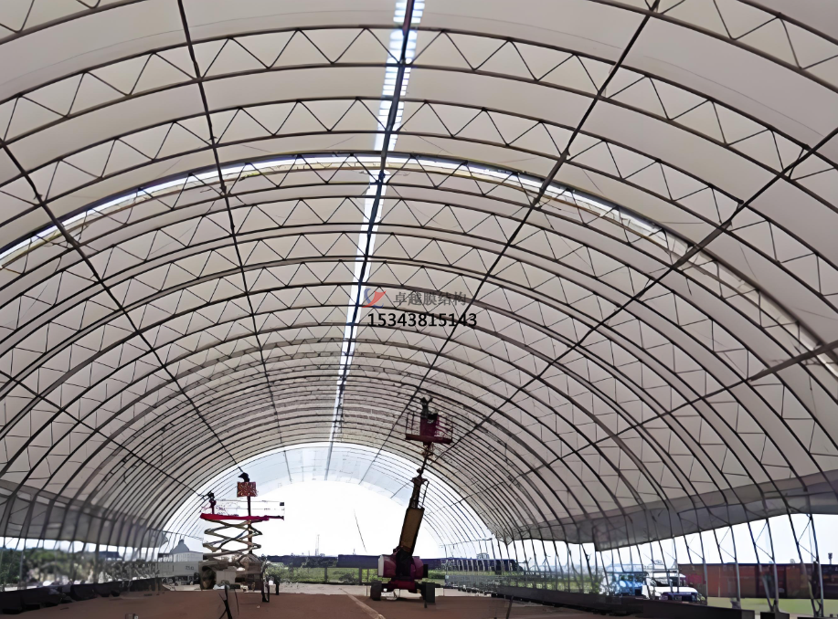 防塵與減排:膜結(jié)構(gòu)煤棚通過全封閉設(shè)計,有效阻止了煤炭裝卸過程中產(chǎn)生的粉塵外泄,減少了空氣污染。同時,內(nèi)置的除塵系統(tǒng)可進(jìn)一步降低棚內(nèi)粉塵濃度,符合嚴(yán)格的環(huán)保排放標(biāo)準(zhǔn)。