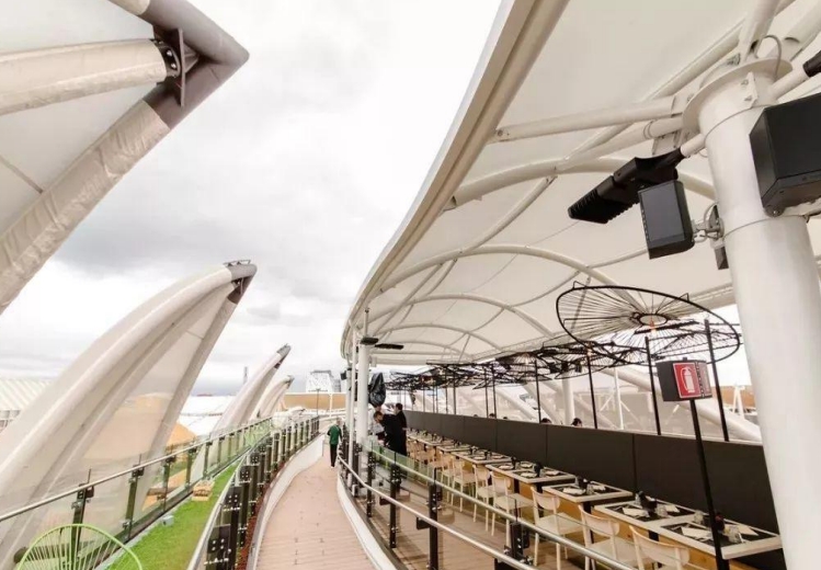 可以讓建筑輕松擁有其他建筑材料無法實現(xiàn)的異形效果,大幅度異型對織物材料來說也是小問題,彎曲度高的外形用織物材料實現(xiàn)起來毫無難度,選擇幕墻織物材料不會因為造型復(fù)雜而耽誤工期,反而是進(jìn)展最快材料。