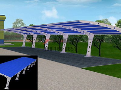 第點(diǎn),膜結(jié)構(gòu)停車棚頂部封板采用茶色(顏色可挑選)陽光板封頂,與車棚整體骨架用壓條鉚接固定,耐酸堿腐蝕,有足夠強(qiáng)度對(duì)棚內(nèi)車輛起到保護(hù)作用;