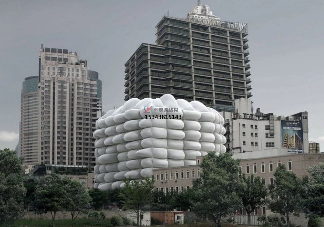 戶(hù)外充氣膜的核心結(jié)構(gòu)基于高強(qiáng)度的薄膜材料,通過(guò)內(nèi)部持續(xù)充氣產(chǎn)生壓力差,從而使膜體保持穩(wěn)定的形狀。這種薄膜材料通常具備出色的抗拉強(qiáng)度、抗紫外線(xiàn)性能以及耐候性,能夠抵御各種惡劣的自然環(huán)境。充氣膜的支撐系統(tǒng)相對(duì)簡(jiǎn)潔,摒棄了復(fù)雜的鋼結(jié)構(gòu)或混凝土框架,僅依靠少量的錨固點(diǎn)與地面相連,大大簡(jiǎn)化了施工過(guò)程,同時(shí)也降低了建筑成本。?