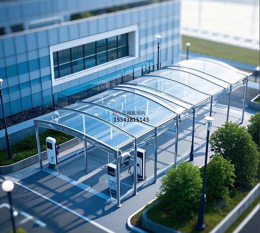 ??????? 膜結(jié)構(gòu)罩棚在采光與通風(fēng)方面優(yōu)勢(shì)顯著。許多膜材具有一定透光性,能讓天然光線(xiàn)柔和地灑入充電區(qū)域,既節(jié)省電力照明本錢(qián),又為車(chē)主營(yíng)造出明亮、舒適的充電環(huán)境。而且,膜結(jié)構(gòu)的開(kāi)放性與合理的空間布局,利于空氣天然流通,有用驅(qū)散充電進(jìn)程中或許產(chǎn)生的熱量與異味,保持空氣新鮮,下降安全隱患。在一些悶熱的夏天,杰出的通風(fēng)可防止因溫度過(guò)高導(dǎo)致的充電設(shè)備毛病,保證充電站正常運(yùn)營(yíng)。