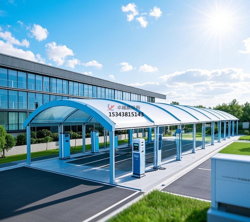 在全球大力推進(jìn)新能源汽車(chē)開(kāi)展的浪潮中,充電站作為關(guān)鍵配套設(shè)施,其建造正如火如荼地進(jìn)行。而充電站膜結(jié)構(gòu)罩棚,憑仗本身共同優(yōu)勢(shì),逐漸成為很多充電站建造的理想挑選,為新能源汽車(chē)的充電進(jìn)程供給了牢靠保證,一起也為城市增添了異樣的現(xiàn)代氣味。