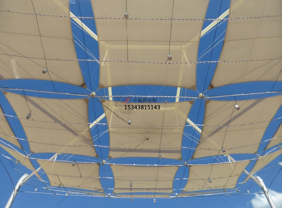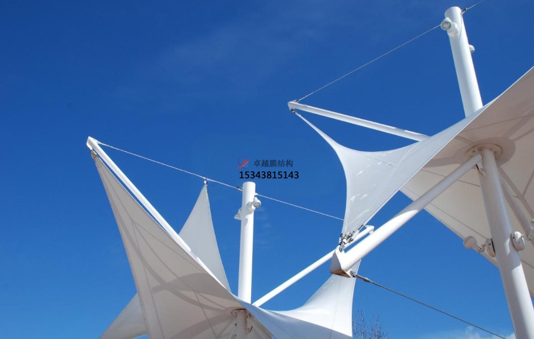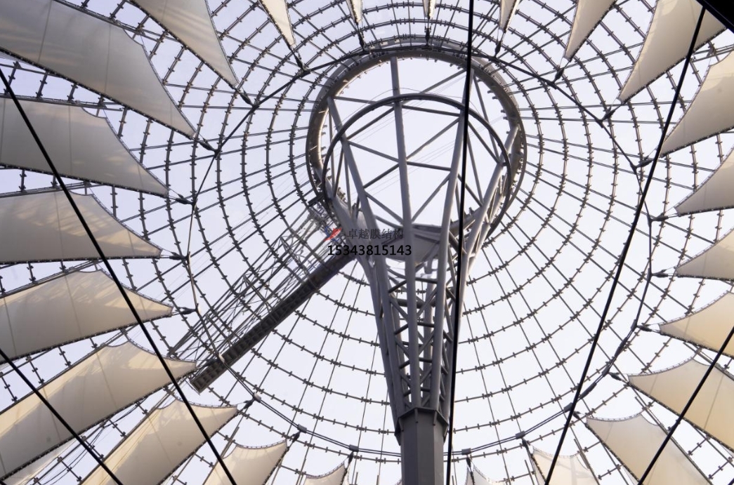 支撐體系則包括拉索、桅桿、拱等結構部件。拉索如同整個結構的 “筋骨”,通過合理布置,將膜材張拉至預定形狀,為膜材提供穩(wěn)定的支撐力。桅桿和拱等作為主要的豎向或曲線支撐,與拉索協(xié)同工作,共同確定膜結構的空間形態(tài)。其原理基于力的平衡,利用膜材的張力和拉索的拉力相互作用,使整個結構處于穩(wěn)定的受力狀態(tài),如同一張被精心張緊的巨型 “織物”,在風中展現(xiàn)出獨特的力學美感。
