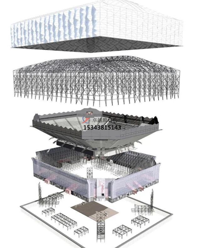 場(chǎng)館高30m,面積兩萬(wàn)平方米,外敷可收回PVC膜,膜在后面的結(jié)構(gòu)的效果下構(gòu)成美麗的崎嶇。透光的外表皮能夠使得場(chǎng)館在白天能夠十分少的依賴(lài)人工照明。