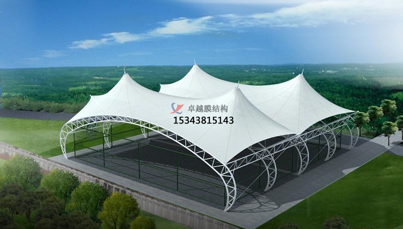 網(wǎng)球館膜結(jié)構(gòu)膜材選擇:其常用可選膜材有三種,分別是聚氯乙烯(PVC)膜、聚四氟乙烯(PTFE)膜、乙烯 - 四氟乙烯共聚物(ETFE)膜。聚氯乙烯(PVC)膜的特性是其具有較高的抗拉強(qiáng)度和抗風(fēng)壓能力,價(jià)格相對(duì)較低,適用于一些對(duì)膜材性能要求不是特別高的網(wǎng)球館。不過,其自清潔性能和使用壽命相對(duì)較短。聚四氟乙烯(PTFE)膜,具有良好的自潔性、強(qiáng)度高、防火阻燃、不受紫外線光的影響等優(yōu)點(diǎn),使用壽命長達(dá) 20 年以上,但價(jià)格較高,是當(dāng)今張拉索膜結(jié)構(gòu)市場主流的材料。乙烯 - 四氟乙烯共聚物(ETFE)膜,具有優(yōu)良的透光性、耐候性和抗沖擊性能,重量輕,安裝方便,可回收利用,但抗穿刺能力相對(duì)較弱。