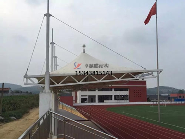 膜結(jié)構(gòu)的篷布材質(zhì)是膜結(jié)構(gòu),而膜材的特點是強(qiáng)度高、耐久性好、防火難燃、自潔性好,不受紫外線影響,使用壽命長,一般15-30年。具有高透光率,透光率為13%,對熱能反射率73%,熱吸收量很少。正是因為這種劃時代的膜材料的發(fā)明,使膜結(jié)構(gòu)成為現(xiàn)代化的建筑。