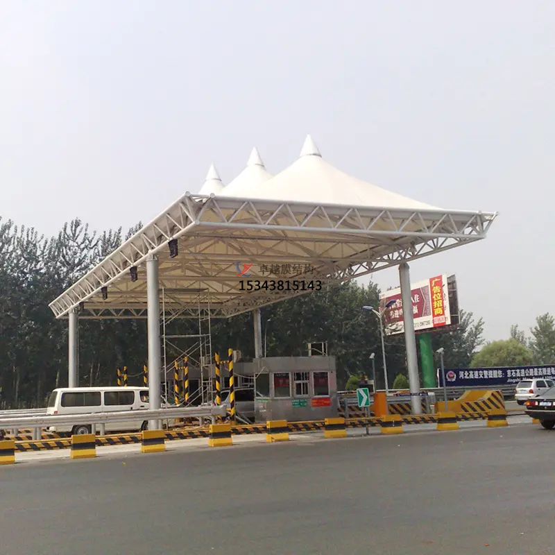 收費(fèi)站張拉膜棚的結(jié)構(gòu)穩(wěn)定性是首先要考慮的因素。膜結(jié)構(gòu)的設(shè)計需要依據(jù)收費(fèi)站的建筑規(guī)模、地理位置和氣候條件進(jìn)行定制化設(shè)計,以確保膜結(jié)構(gòu)在使用過程中保持穩(wěn)定。為了提高結(jié)構(gòu)穩(wěn)定性,需要在膜材和鋼索的選擇、張拉、連接等環(huán)節(jié)進(jìn)行精細(xì)化處理。