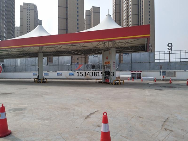 用于加氣站雨棚施工中的膜材是一種具有高強度、柔韌性好的薄膜材料;中心的織物基材分為聚酯纖維及玻璃纖維,而作為涂層材使用的樹脂有聚氯乙烯樹脂(PVC),硅酮及聚四氟乙烯樹脂(PTFE),它具有輕質、柔韌、厚度小、重量輕、透光性好;對自然光有反射、吸收和透射能力;它不燃、難燃或阻燃;具有耐久、防火、氣密良好等特性;表面經氟素處理(涂覆PVF或PVDF)的膜材、自身不發(fā)粘、有很好的自潔性能。