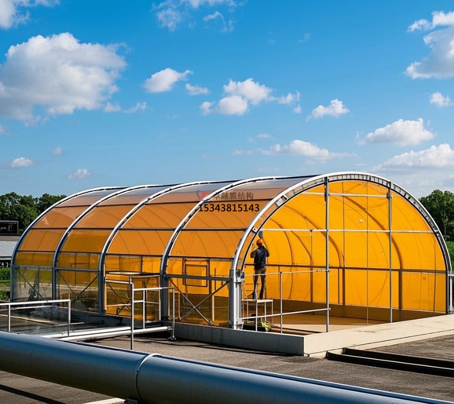 在城市生活垃圾中轉(zhuǎn)站中,膜結(jié)構(gòu)罩棚應(yīng)用普遍。如北京某區(qū)的多個生活垃圾中轉(zhuǎn)站,采用充氣式膜結(jié)構(gòu)罩棚,不僅解決了垃圾異味擾民問題,還提升了垃圾轉(zhuǎn)運(yùn)效率,周邊居民對環(huán)境滿意度顯著提高。
