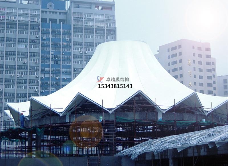 很好的先,商業(yè)廣場(chǎng)雨棚搭建是一種共用建筑物,是由建設(shè)單位出資進(jìn)行修建,所以這種產(chǎn)品的很好的要要求便是耐用穩(wěn)固,金屬商業(yè)廣場(chǎng)雨棚搭建都是金屬支撐柱,然后其上進(jìn)行焊接等工藝加裝頂棚。如果是選用的聚碳酸酯資料作為頂棚的話,選用螺栓固定。相對(duì)于膜結(jié)構(gòu)來說,整體能接受的載荷會(huì)小很多,遇到劇烈的暴風(fēng)雨氣候,頂棚會(huì)和支撐件別離。而膜結(jié)構(gòu)受力點(diǎn)小,單位尺度上能接受的壓強(qiáng)高,因此在屢次的實(shí)踐中,膜結(jié)構(gòu)商業(yè)廣場(chǎng)雨棚搭建都穩(wěn)固如山。