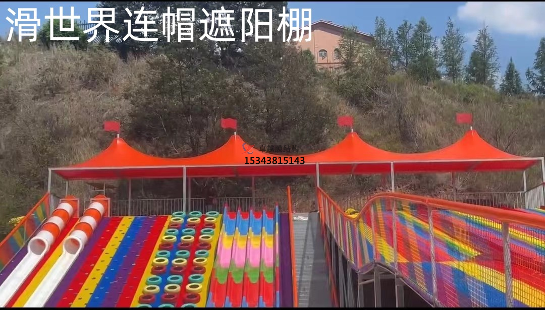 樂園內(nèi)的遮陽棚設(shè)計獨(dú)特,既可遮陽又可擋雨,為游客提供了一個舒適的游玩環(huán)境。遮陽棚采用輕質(zhì)、高強(qiáng)度的材料制成,具有良好的抗風(fēng)抗壓性能,即使在惡劣的天氣條件下也能為游客提供保護(hù)。此外,遮陽棚的設(shè)計還充分考慮到了安全性,采用了防滑、防撞等措施,確保游客在游玩過程中的人身安全。