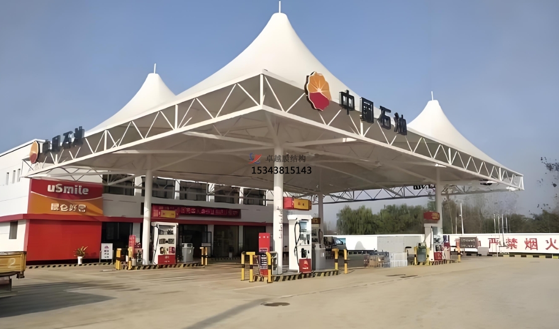 膜結(jié)構(gòu)頂棚通過(guò)技術(shù)迭代與設(shè)計(jì)創(chuàng)新,正在重新定義加油站的建筑形態(tài)。其“輕盈、高效、可持續(xù)”的特性,不僅滿足了能源補(bǔ)給場(chǎng)景的功能需求,更成為城市美學(xué)與低碳理念融合的典范。