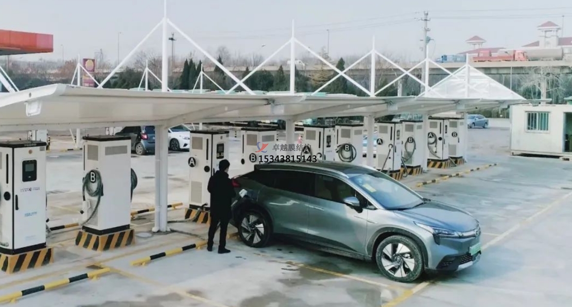 充電站膜結(jié)構(gòu)罩棚作為電動汽車充電設(shè)施的重要組成部分,以其獨特的優(yōu)勢在現(xiàn)代城市中逐漸嶄露頭角。這種結(jié)構(gòu)不僅為電動汽車提供了必要的保護,還以其美觀、實用的特性,成為城市景觀中的一道亮麗風景線。