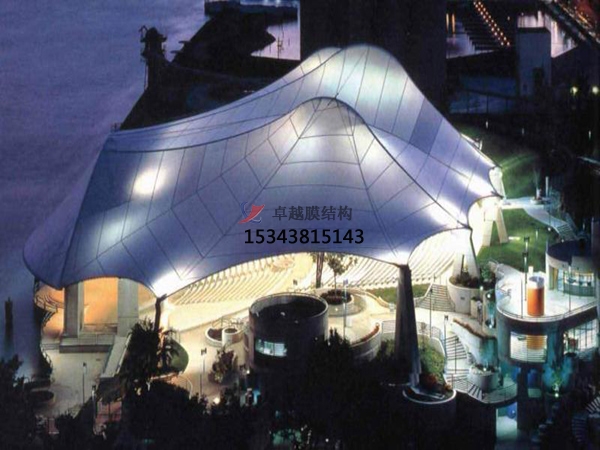 膜結(jié)構(gòu)是一種全新的建筑結(jié)構(gòu)形式,它集建筑學(xué)、結(jié)構(gòu)力學(xué)、精細(xì)化工與材料科學(xué)、計(jì)算機(jī)技術(shù)等為一體,具有很高技術(shù)含量。其曲面可以隨著建筑師的設(shè)計(jì)需要任意變化,結(jié)合整體環(huán)境,建造出標(biāo)志性的形象工程。主要具有以下特點(diǎn):