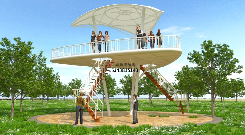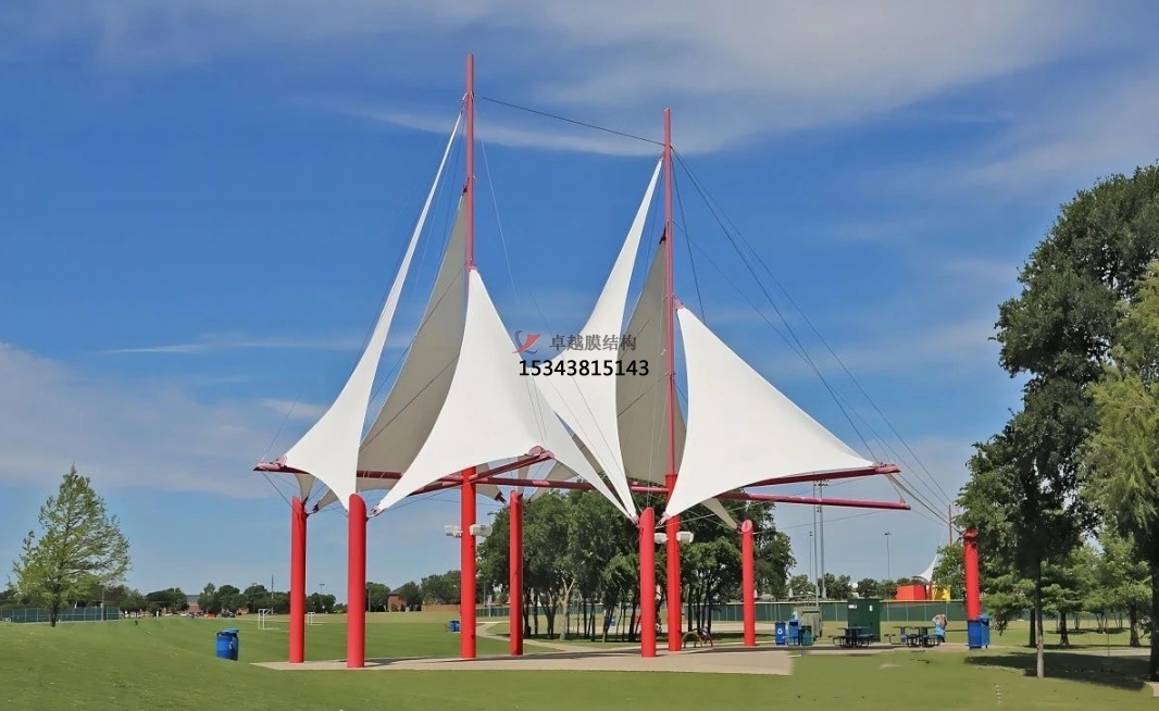 未來的景觀棚膜結(jié)構(gòu)將不再僅僅局限于單一的遮陽避雨功能,而是會(huì)朝著多功能融合的方向發(fā)展。比如,在景觀棚內(nèi)集成光伏發(fā)電系統(tǒng),將太陽能轉(zhuǎn)化為電能,實(shí)現(xiàn)能源的自給自足;或者結(jié)合聲學(xué)設(shè)計(jì),使其具備良好的隔音效果,可用于舉辦小型音樂會(huì)、演講等活動(dòng);還可以與水幕景觀、噴泉等水景元素相結(jié)合,打造出更加豐富多彩的戶外體驗(yàn)空間。