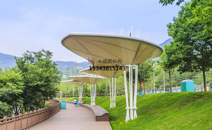 耐久張拉膜景觀:使用壽命10年,中小型運(yùn)動(dòng)設(shè)施,交通設(shè)施等,薄膜材料為聚酯纖維PVDF或PVF涂膜。