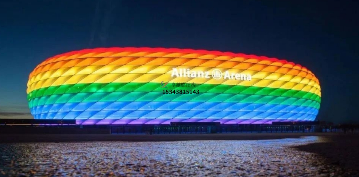 輕質(zhì)高強:ETFE膜材的重量極輕,只有同等面積玻璃質(zhì)量的1%,這能夠大幅度降低主體結(jié)構(gòu)荷載,特別適合于大跨度結(jié)構(gòu)。