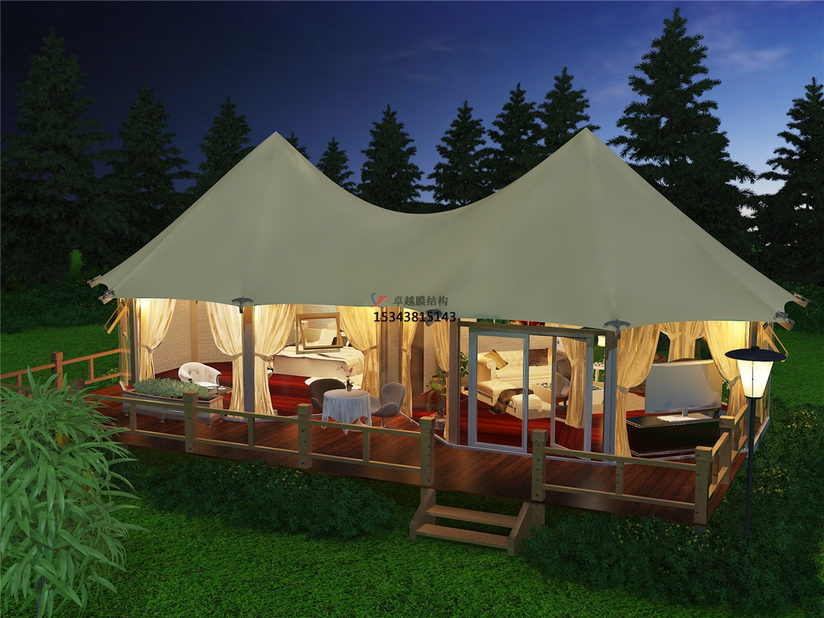 另外由于膜材料本身特有的顯色性,在夜間彩燈的映射下能形成絢麗繽紛的景觀。不僅為人們提供遮陽避雨的空間。同時(shí),更由于這種生動(dòng)活潑的造型能給人們帶來時(shí)尚、輕松的休閑感受,所以廣受歡迎。