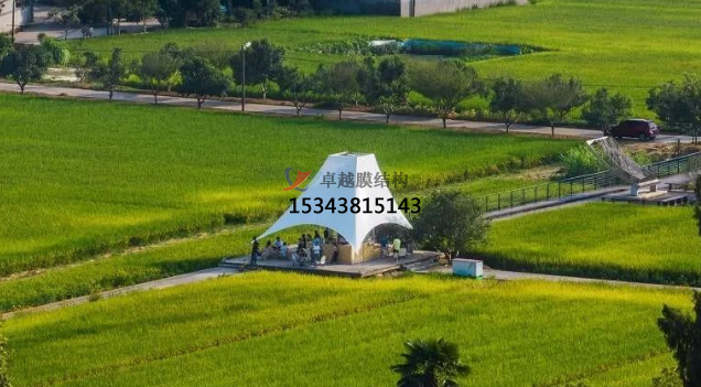 設計方于是設想了一種快速搭建的輕型結(jié)構(gòu):塔(樓梯)在中間和架在水池上的操作空間形成一個鋼結(jié)構(gòu)的整體,樁基打到池底以下的持力層,形成穩(wěn)定的核心結(jié)構(gòu);塔頂和平臺的四角以張拉膜結(jié)構(gòu)和鋼索拉接就是亭子的屋頂,形成輕質(zhì)的半透明的外部結(jié)構(gòu)。建成后塔亭經(jīng)常聚集了很多人,有當?shù)氐拇迕?,有游客,還有小動物。他們或談天,或嬉鬧,或休息,或登上塔頂遠望,這正是設計最初的愿景。
