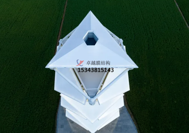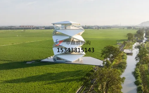 稻田上的燈塔的落成為當(dāng)?shù)氐泥l(xiāng)村提供了新的觀景點(diǎn)和社交聚集地。瞭望塔塔高23m,坐落于國(guó)家級(jí)現(xiàn)代農(nóng)業(yè)先行示范區(qū)高標(biāo)準(zhǔn)農(nóng)田的中心區(qū)域。它如同雕塑一般從稻田中螺旋升起,三角形元素和白色PTFE薄膜定義了其簡(jiǎn)潔的設(shè)計(jì)語(yǔ)言,在鄉(xiāng)村大地上賦予了其強(qiáng)烈的存在感。